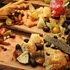 Variedades de quesos artesanales especiados, salame, salmón ahumado, pasas rubias, aceitunas, queso untable sabor, mermelada de higo nuez, galletas saladas, tostadas y frutas de estación.
